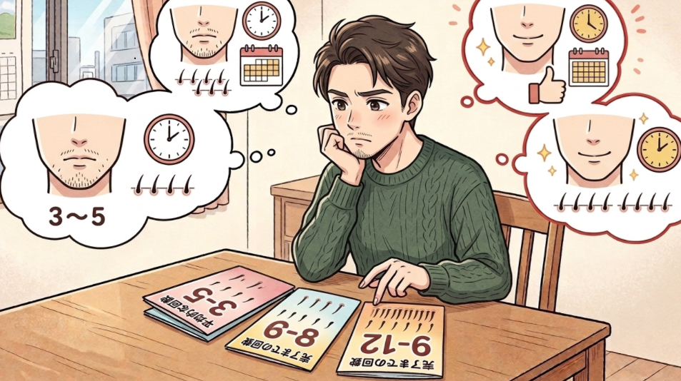 また、目標を青髭の完全解消に設定した場合、5回では到達できないケースが多く、結果的に想定の2倍以上の費用がかかったという声もあります。料金を比較する際は「広告の最安値」ではなく「自分の目標回数での総額」を算出することが重要です。