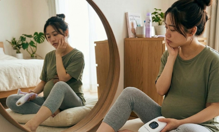 妊娠中の家庭用脱毛器の使用は、出力の強弱に関わらず、主要メーカーの取扱説明書で禁止事項とされています。理由は胎児への直接的な影響ではなく、ホルモン変化によって敏感になった母体の肌へのリスク・体調への負担・薬の使用制限があるためです。