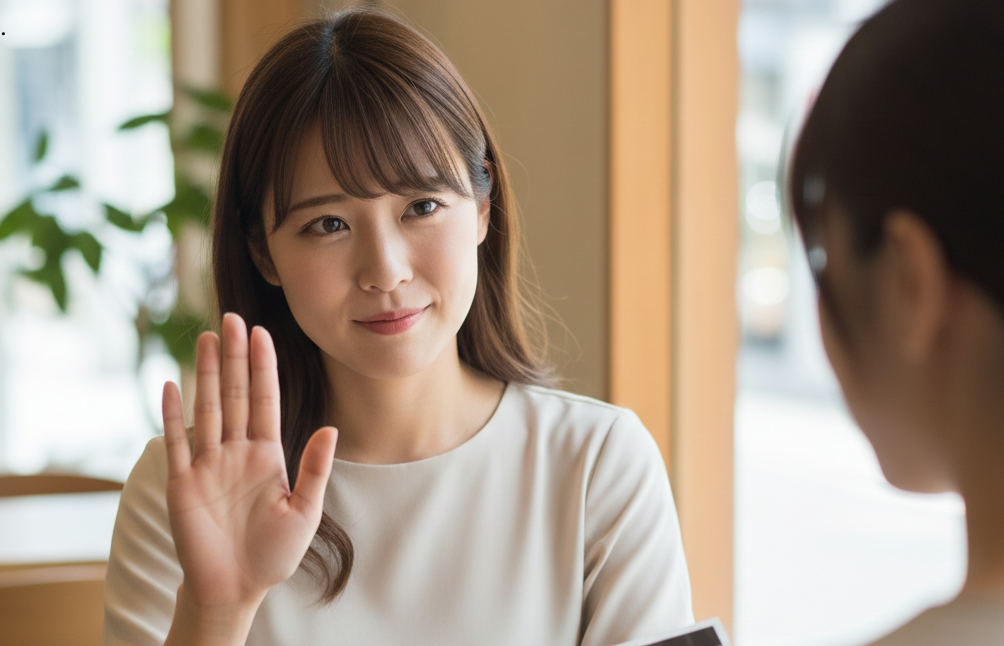 ポイントは、曖昧に笑って終わらせるのではなく、短い言葉で意思を伝えることです。