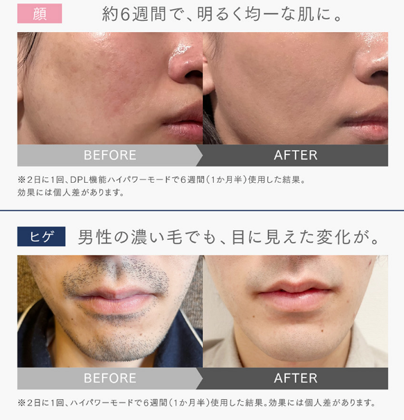ヒゲはこのサイクルが比較的短く、成長期の毛が常に一定数存在するため、継続的に照射することで徐々に毛量を減らしていくことが可能です。なお、家庭用光脱毛器による永久脱毛(完全に生えなくなる状態)は医療行為に該当するため法律上実現できませんが、継続使用によって「毛が細くなる・生えてくるスピードが遅くなる・毛量が明らかに減る」という状態は、多くのユーザーが実感しています。