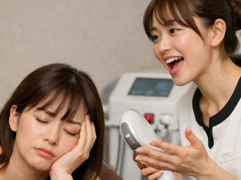 脱毛サロンに通っているのに、施術よりもスタッフとのトークの方が疲れてしまう——そんな経験を持つ方は、決して少なくありません。「毎回オプションを勧められてうんざりする」「断るのが申し訳なくて、いつもストレスになっている」「VIOの施術中もずっと話しかけてくるのがつらい」といった声は、口コミサイトや知恵袋にも多数寄せられています。