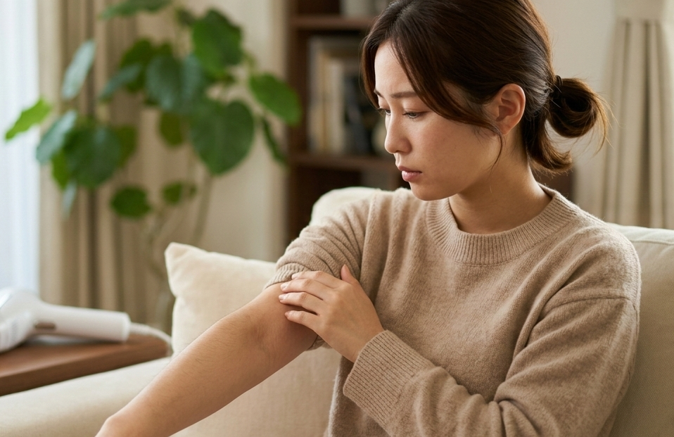 産毛への効果が「まったく出ない」わけではありませんが、「医療脱毛と同等の効果が出る」という期待は現実的ではありません。二の腕の産毛に対して家庭用脱毛器を使う場合、「毛量が少し減る・毛が細くなる」程度の変化を目標にすることが現実的な期待値です。